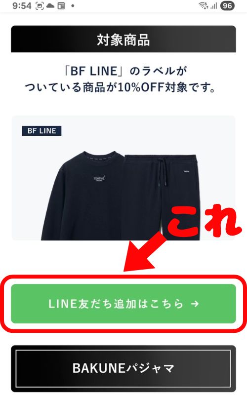 ブラックフライデー特集ページの中間あたりにある『LINE友だち登録で…友だち登録はこちら』をタップします。